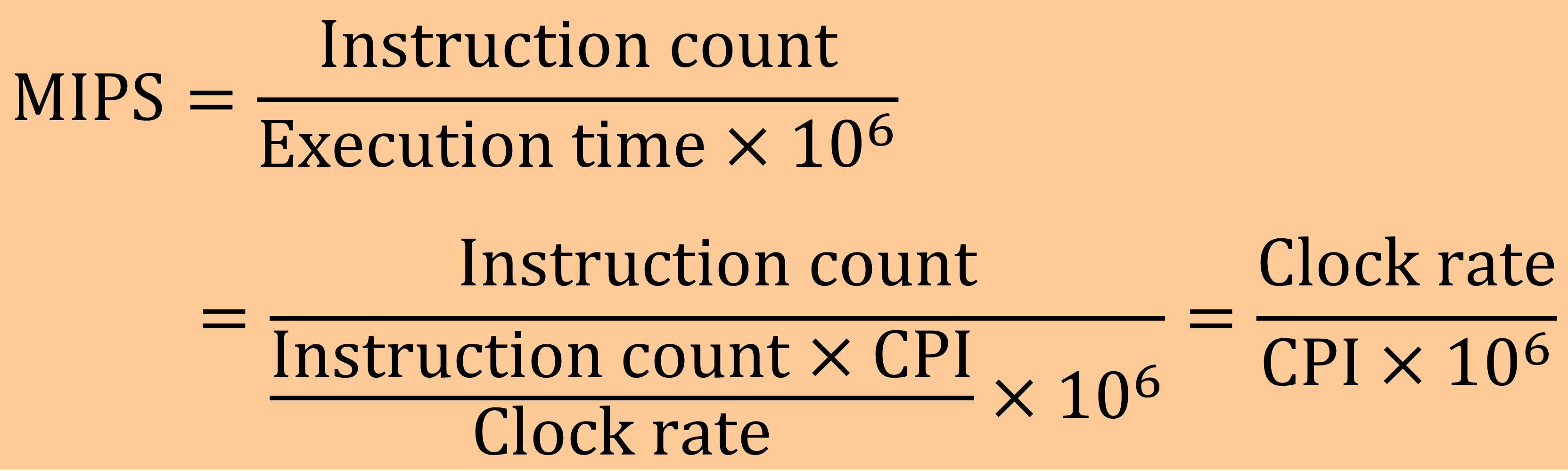 MIPS: Millions of Instructions Per Second (초 당 명령어 수행을 100만으로 나눈 성능 지표)