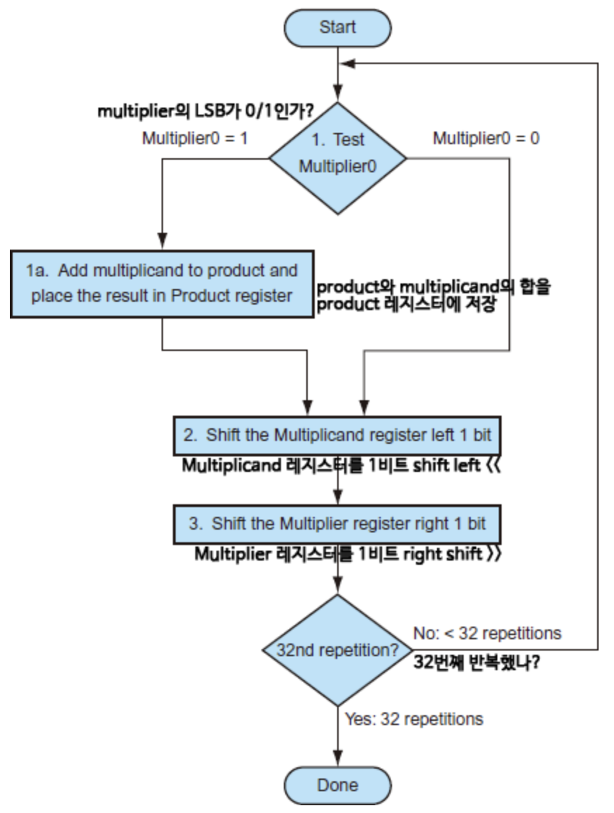 n-bit multiplicand의 곱셈 -> (add/shift n번 진행)