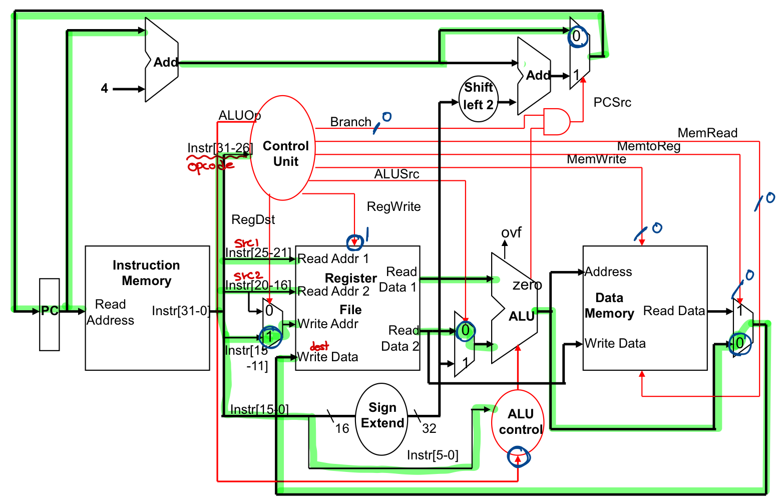 R-Type 명령어들의 Datapath (control 추가)
